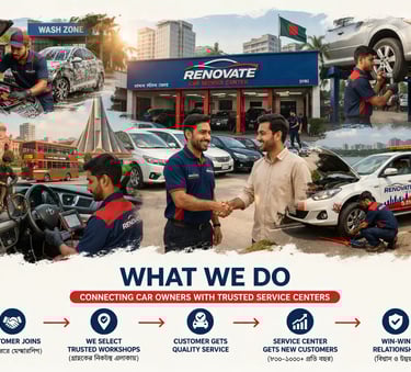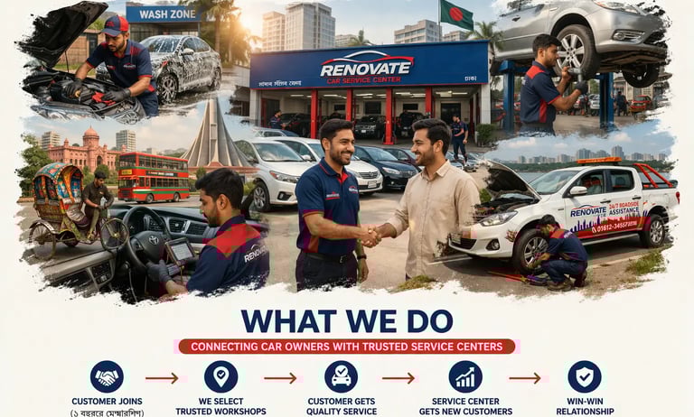 Founded in 2016, Renovate is a Dhaka-based automobile service platform dedicated to connecting car owners with trusted and high-quality service centers across the city.