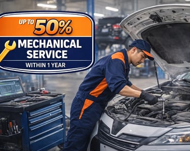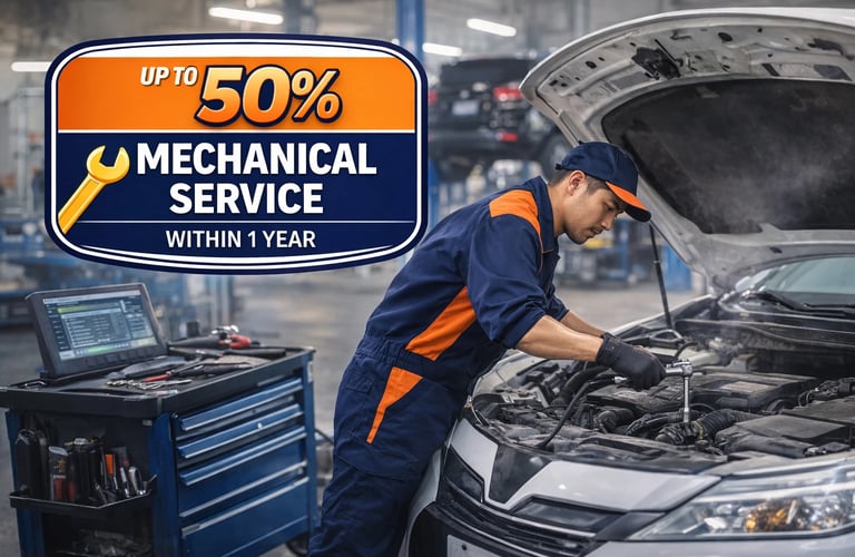 As a valued customer, you will receive up to 50% discount on any mechanical service within one year.
