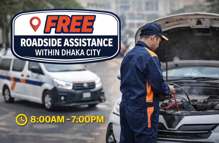 We provide free emergency roadside assistance within Dhaka city for our valued customers. With multiple service points across the city, help is always nearby. In case of any problem, you can contact your nearest Renovatex service point, and our team will assist you promptly at your location.